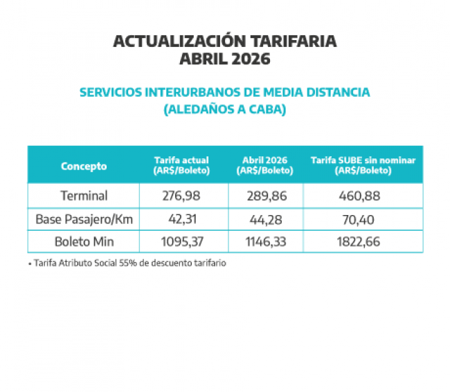 En este sentido, esta cartera provincial pone en conocimiento público de todas las personas usuarias, los cuadros tarifarios actualizados de acuerdo al Índice de Precios al Consumidor (IPC) Nivel General de la Región Gran Buenos Aires, relevado por el INSTITUTO NACIONAL DE ESTADÍSTICAS Y CENSO (INDEC), correspondiente al periodo mensual de febrero del año 2026, de conformidad con el mecanismo previsto en los artículos 4° y 5° de la Resolución N° 81/25, y que entrarán en vigencia a partir de las 00 hs. del día 1 de abril del año 2026.